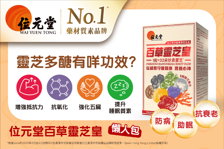 靈芝多醣具有抗氧化、增強抵抗力、提升睡眠質素、增強體質等作用。